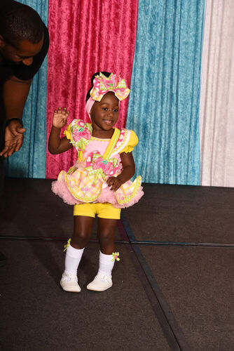 This bright and cheerful Shuggy casual wear set is a showstopper in size 12/2. Featuring a colorful mix of plaid, polka dots, and layered bows, it’s full of personality and pageant-ready charm. Designed for high-energy casualwear competitions, the skirted romper adds bounce and fun while remaining easy to move in on stage.